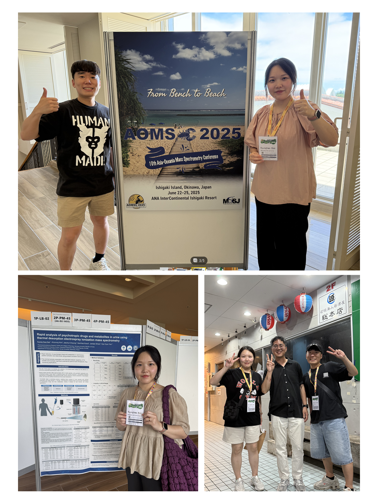 일본 이시가키에서 개최된 Asia-Oceania Mass Spectrometry Conference (AOMSC)에 정인이와 경화가 포스터 발표자로 참가했습니다.